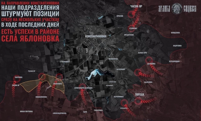 На ЧасовЯрском направлении внутри Часов Яра изнуряющие городские бои, противник цепляется за позиции, бои на южном фланге.