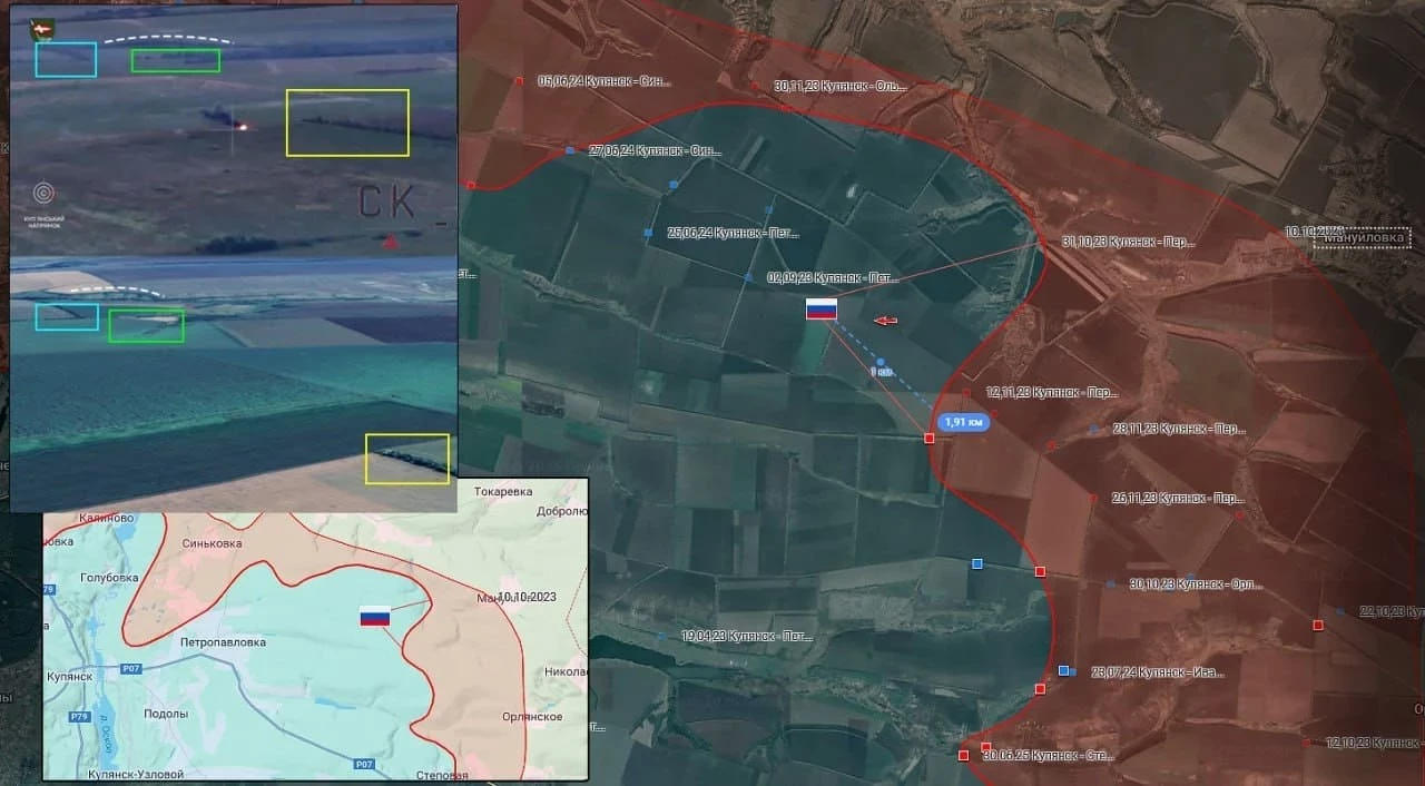 Купянское направление: Вооружённые силы Российской Федерации (ВС РФ) развивают успехи к северу от Купянска, продвижение от Фиголевки в сторону Петро-Ивановки. Есть продвижение в районе Каменки, Строевки и Мелового.