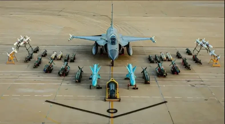 Да, осовременивание МиГ-21 дало самолету «второе дыхание» и в плане вооружения. Если МиГ-21ПФ нес в качестве вооружения ДВЕ управляемые ракеты К-13/Р-3 (наша копия AIM-9 Sidewinder), то вот убийственный ассортимент «внучка» JF-17 более внушителен: