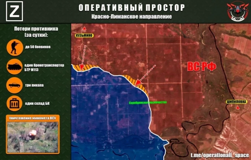 На Краснолиманском участке ВС РФ продвинулись восточнее Торского, возле дороги на Кременную, расширили зону контроля севернее Зелёной Долины. В Карповке взяли ещё один участок на берегу Нитриуса. В Редкодубе пока без перемен: село за ВСУ, активна наша артиллерия. Идут бои в Новом Мире, сообщает в своём Telegram-канале Олег Царёв.