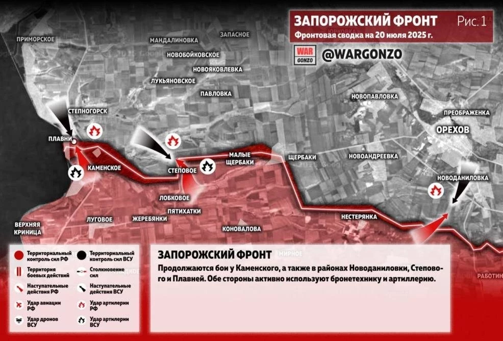 Карта боевых действий на Украине. Ситуация в зоне СВО на 20.07.2025