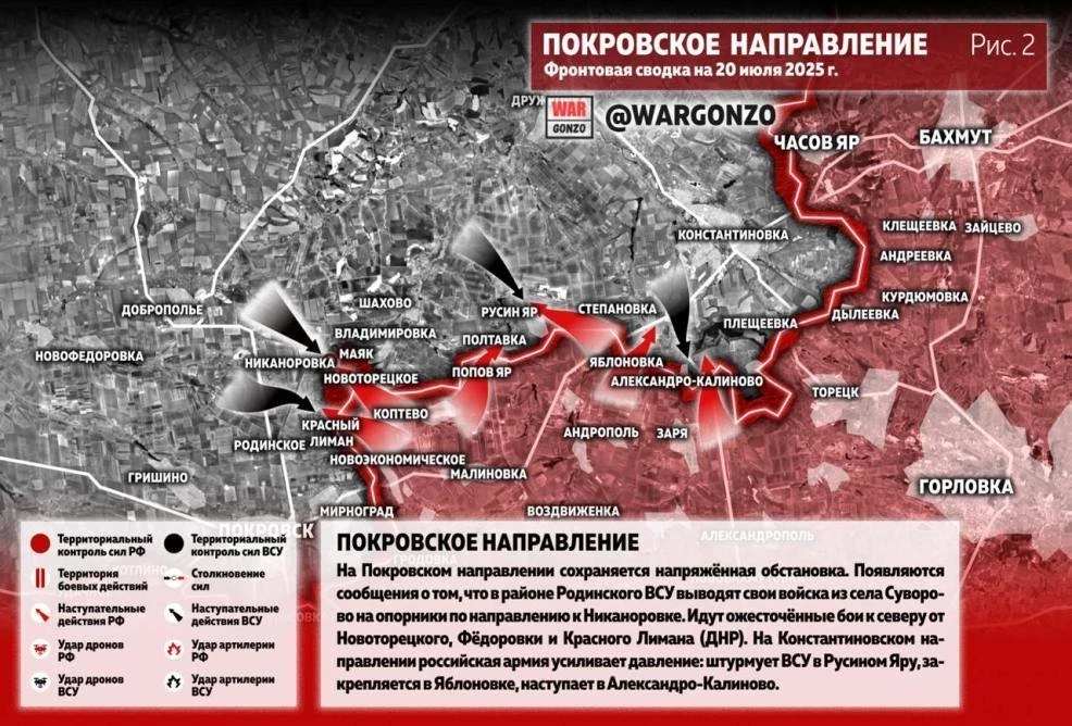 Последние новости » Эксклюзив » Карта боевых действий на Украине от 20.07.2025: ВС РФ ведут ожесточённые бои к северу от Новоторецкого