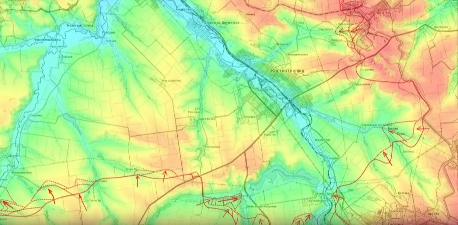 «Если падёт эта линия обороны, наши части по лесополосам смогут выйти далеко на север и охватить Константиновку с флангов. Противник вынужден отходить за водохранилище и в панике пытается организовать там новый рубеж», - отметил Подоляка.