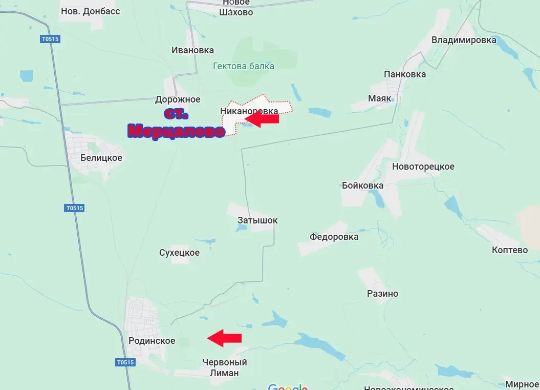 Теперь, ввиду приближения к Мерцалово ВС РФ, использование противником указанного маршрута превращается в более чем рискованное. А это означает фактическое перерезание очередного пути снабжения Покровского гарнизона ВСУ нашими войсками, что делает ситуация для этого гарнизона ещё более сложной.