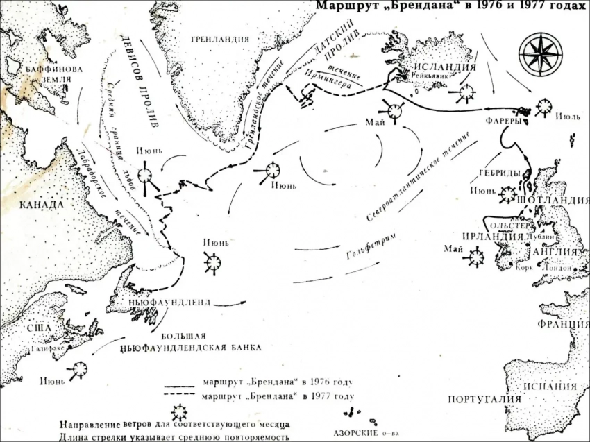 Маршрут плавания «Брендана» в 1976-1977 гг.