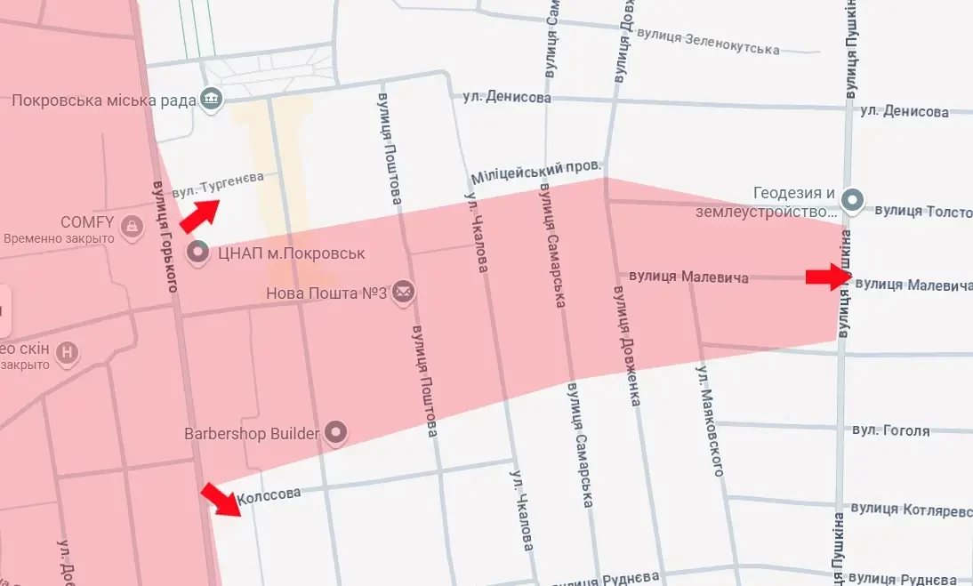 Осуществлено продвижение от улицы Горького (успели переименовать в Европейскую) до улицы Пушкина. Это позволило создать новую ось по разрезанию группировки врага в Покровске.