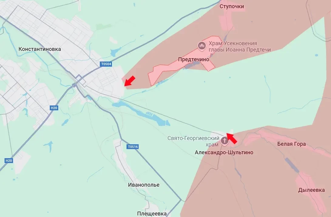 После освобождения Предтечино российские войска продвинулись вдоль реки Грузская и одновременно вдоль автодороги Т0504 в юго-западном направлении. В результате этого продвижения была пробита брешь в обороне ВСУ на окраине города Константиновка.