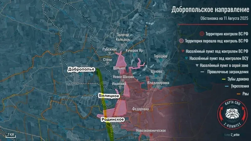 Согласно сообщениям с мест, наши широким фронтом пытаются выйти к Доброполью, весьма крупному городу, в котором до начала боевых действий проживало порядка 30 тысяч человек. Продвижение идет как вдоль железной дороги, так и по трассе мимо Белицкого. Как заявил военный эксперт, полковник ВСУ Константин Машовец, ВС РФ используют тактику малых штурмовых групп, просачиваются через очаговую оборону ВСУ и уже практически вышли к Доброполью. Бои идут и восточнее, что создает угрозу Константиновке и Дружковке. При этом попытки остановить продвижение ВС РФ успехом не увенчались.