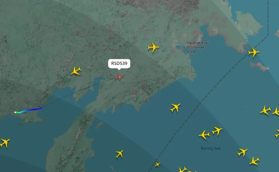 Самолёт с позывным RSD539 лётного отряда «Россия» направляется в американский Анкоридж, где, как ожидается, будет совершать посадку через два с небольшим часа.