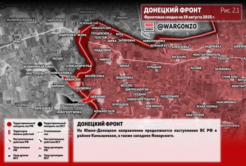 Карта боевых действий на Украине. Ситуация в зоне СВО на 20.08.2025