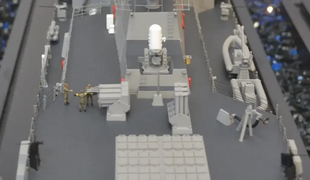 Пусковые установки JAGM крупным планом на модели эсминца класса Arleigh Burke