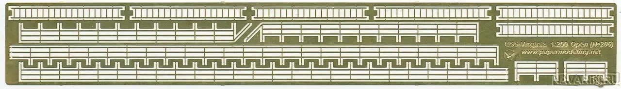 А это фототравленые детали к этому кораблю в масштабе 1:200. Плохо, что «Монитор» и «Вирджинию» выпускают в разных масштабах. Рядом их не поставить. А какая бы могла быть диорама, если еще «море» сделать красивым!
