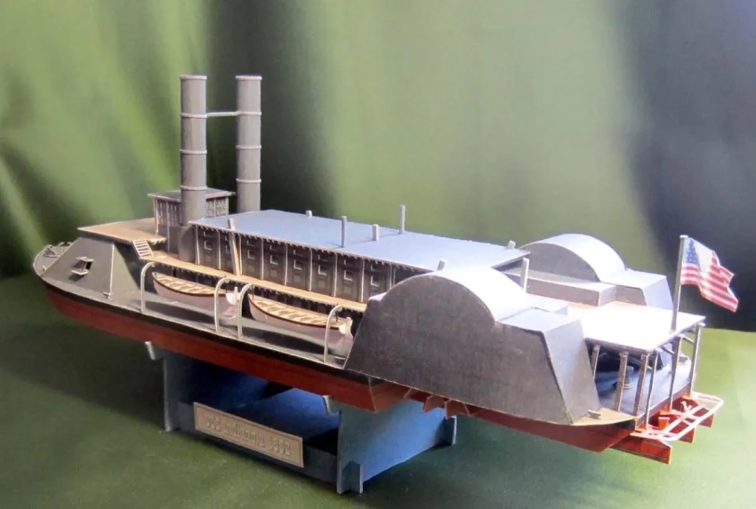 Радует, что все самые оригинальные боевые корабли северян и южан сегодня нашли свое воплощение во множестве бумажных моделей. В частности, есть модель броненосца «Чилликоте» — по сути, это был… «тупоносый плот», однако с боевым казематом и двумя гребными колесами.
