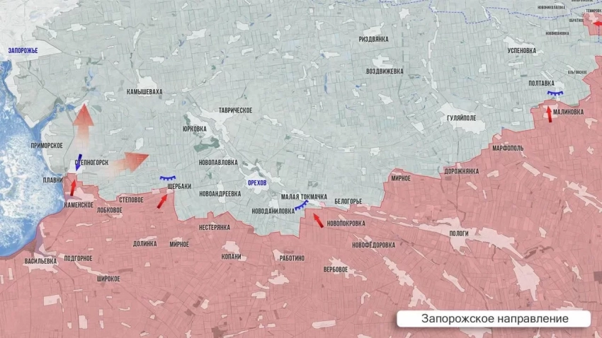 На Запорожском направлении продолжаются изматывающие бои за контроль над Плавнями и Степногорском. Российские войска закрепляются на западных окраинах Степногорска, несмотря на упорное сопротивление ВСУ.