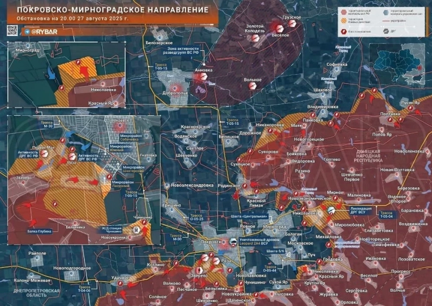 На Покровском фронте развивается наступление в Удачном, бои идут в северной части посёлка. ВС РФ вышли к окраинам Молодецкого, а также заняли ещё одну лесополосу у дороги на Покровск. МО РФ сообщило о взятии Леонтовичей. В южной части Покровска нашим удалось закрепиться за квартал «высоток».