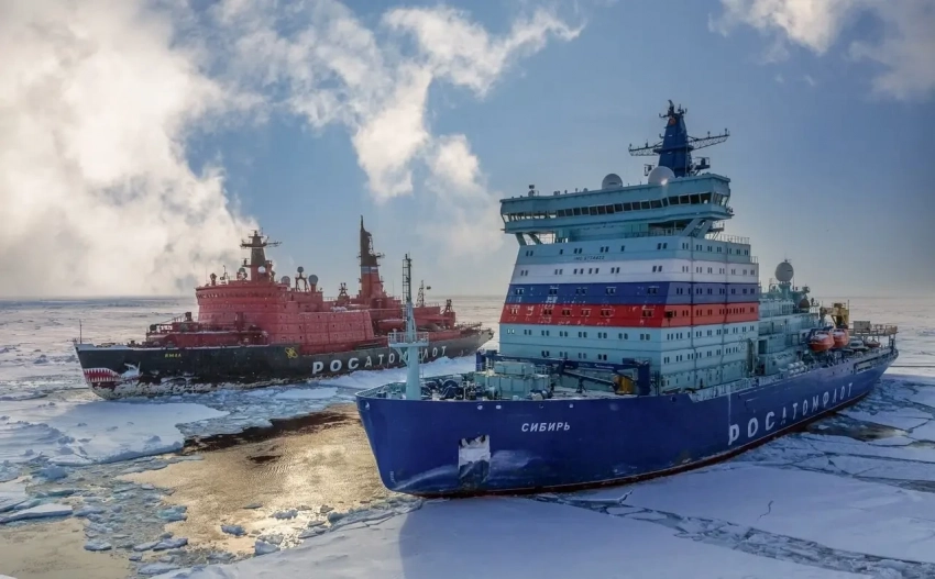В общем, три наших ледокола, введенных в строй за последние пять лет, «Арктика», «Сибирь» и «Урал», они как бы превышают по мощности все, что может колотиться о лед Арктики под флагами США, Канады, Великобритании и прочих государств.