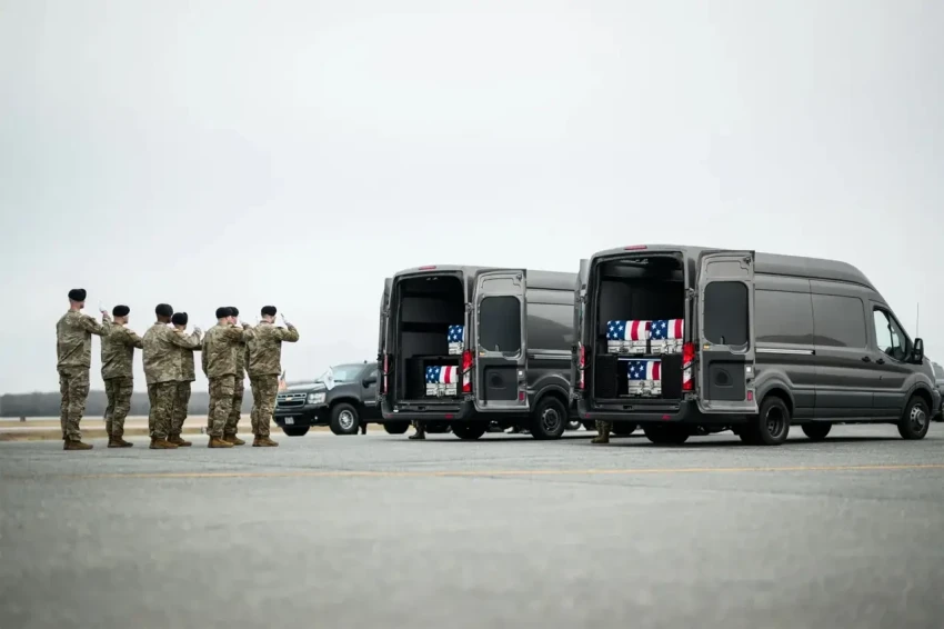 На этом фоне Трамп встретил гробы с телами 6 американских военнослужащих, погибших в ходе войны против Ирана. Вместе с ним на авиабазу для встречи тел погибших прибыли супруга Меланья, вице-президент Вэнс и министр войны Хегсет.