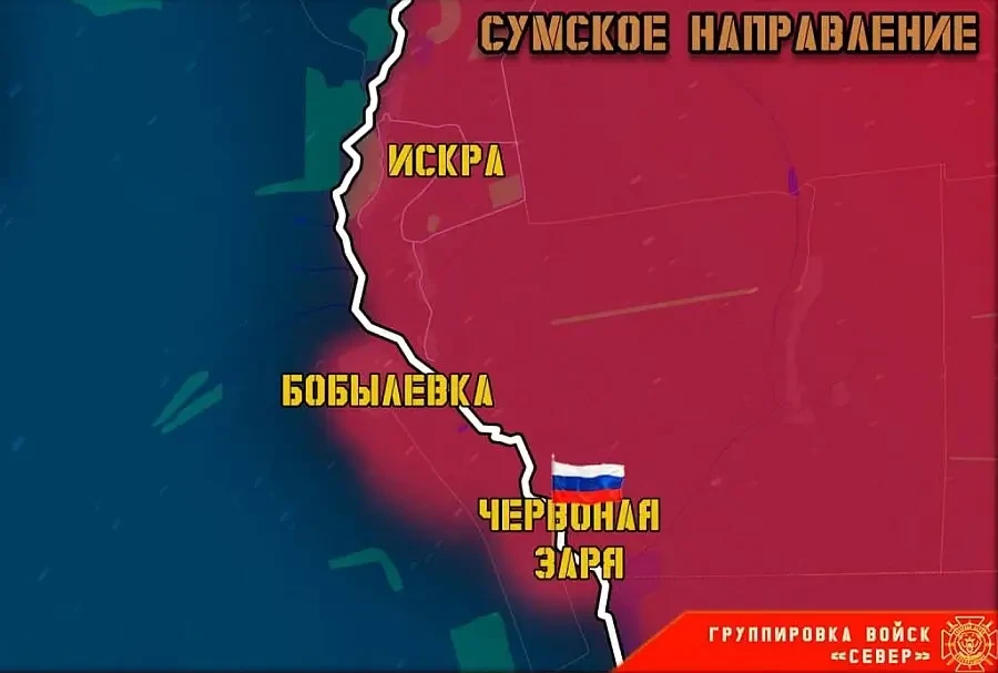Телеграм-канал «Северный ветер», эксклюзивно освещающий боевую работу данной ГВ, сообщает, что в ходе ожесточенных боев юго-восточнее Бобылевки штурмовики 80-й отдельной мотострелковой бригады (Арктической) 14-го армейского корпуса группировки войск «Север» зачистили лесные массивы и освободили населенный пункт Червоная Заря в Шосткинском районе Сумской области. С занимаемых позиций были выбиты националисты 101-й отдельной бригады территориальной обороны ВСУ.
