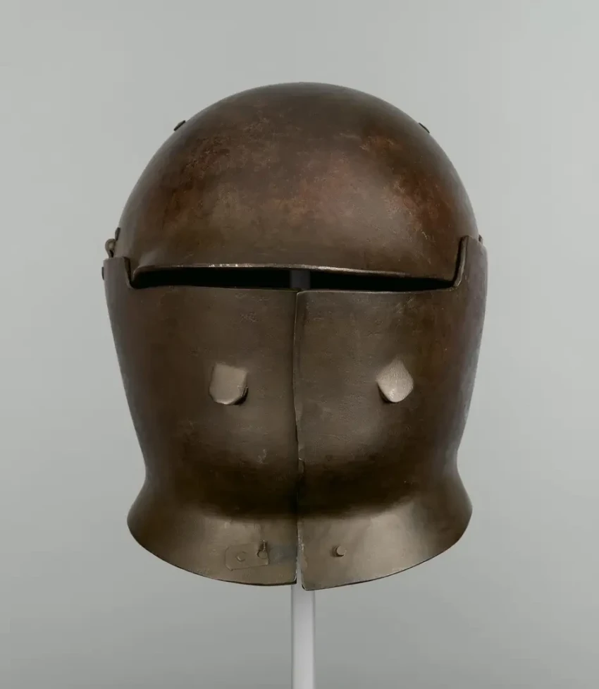 А было так, что в коллекциях Метрополитен-музея им были найдены так называемые «осадные шлемы». Это была защитная экипировка осадных инженеров, саперов и бомбардиров, которые регулярно попадали под обстрел с близкого расстояния, поэтому поневоле носили прочную противопульную броню и в первую очередь шлем, поскольку чаще всего подставляли под выстрелы свою голову.