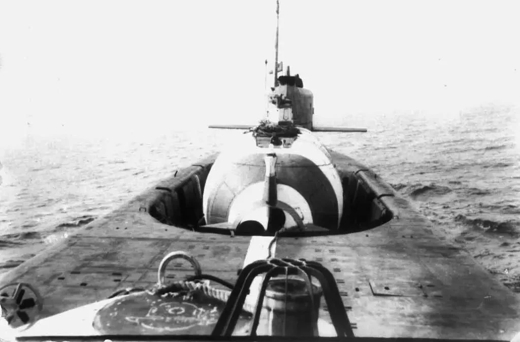За ограждением прочной рубки находится высокий банкет с местами для размещения двух спасательных глубоководных аппаратов и защиты их от волнения моря вплоть до 8 баллов.