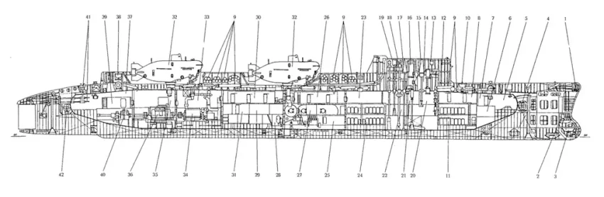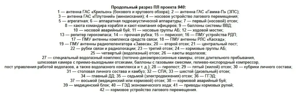 Продольный разрез ПЛ проекта 940