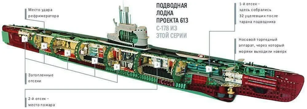 В 19.45 двадцать первого октября 1981 года в заливе Петра Великого неподалеку от Владивостока произошло столкновения транспортного судна «Рефрижератор-13» с подводной лодкой «С-178» проекта 613В. Через 40 секунд, приняв в прочный корпус около 130 т воды, лодка затонула и легла на грунт на глубине 31 м с креном 28 градусов на правый борт. В затопленных отсеках погибли 18 человек. Был отдан носовой аварийно-сигнальных буй, который благополучно всплыл на поверхность и в 21.00 обнаружен «Рефрижератором-13».