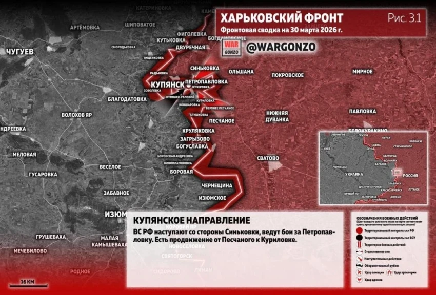 ВС РФ на Купянском направлении наступают со стороны Синьковки: подробности боевых действий на 30.03.2026