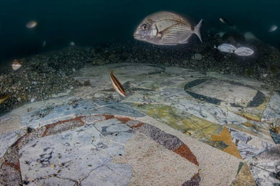 Пол, расположенный в затопленном городе Байи, занимает площадь около 250 квадратных метров и относится к последним дням Римской империи. Примечательно, что пол был построен с использованием мрамора, бывшего в употреблении, вероятно, для снижения затрат, что свидетельствует об экономическом давлении даже среди элиты в тот период.