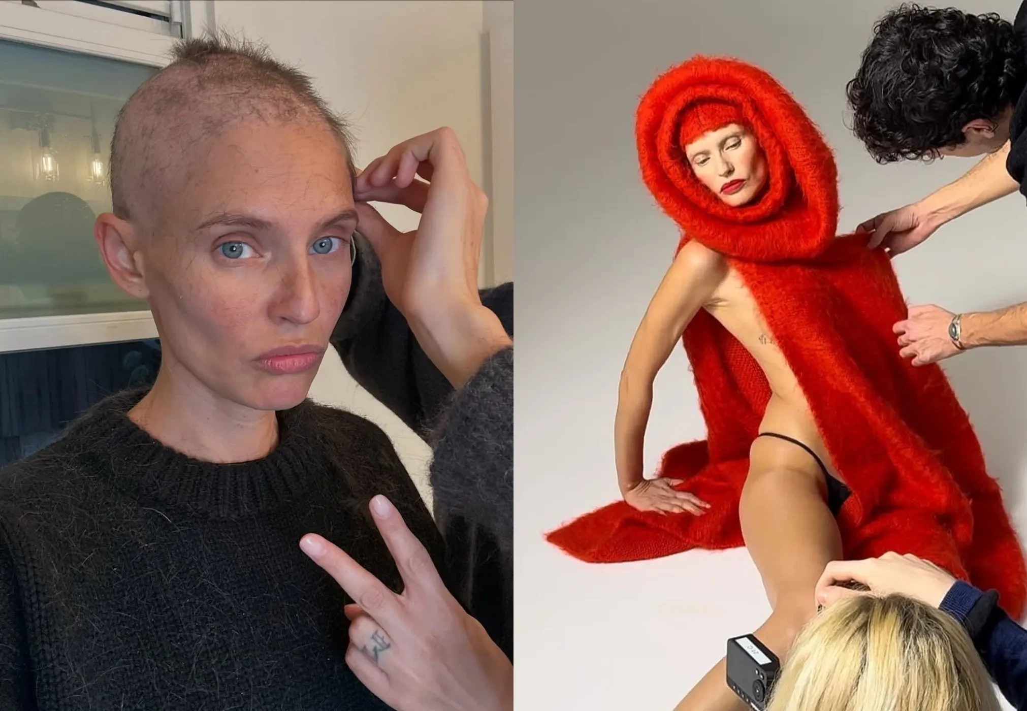40-летняя итальянская супермодель показала, как прошёл её первый и последний день химиотерапии, как старшая дочь Матильда побрила ей голову дома бритвой и как она потом отправилась завершить процедуру в салоне; показала, как работала на модных съёмках, как танцевала с дочерьми для тиктока и как её поддерживал бойфренд Алессандро Катрера.