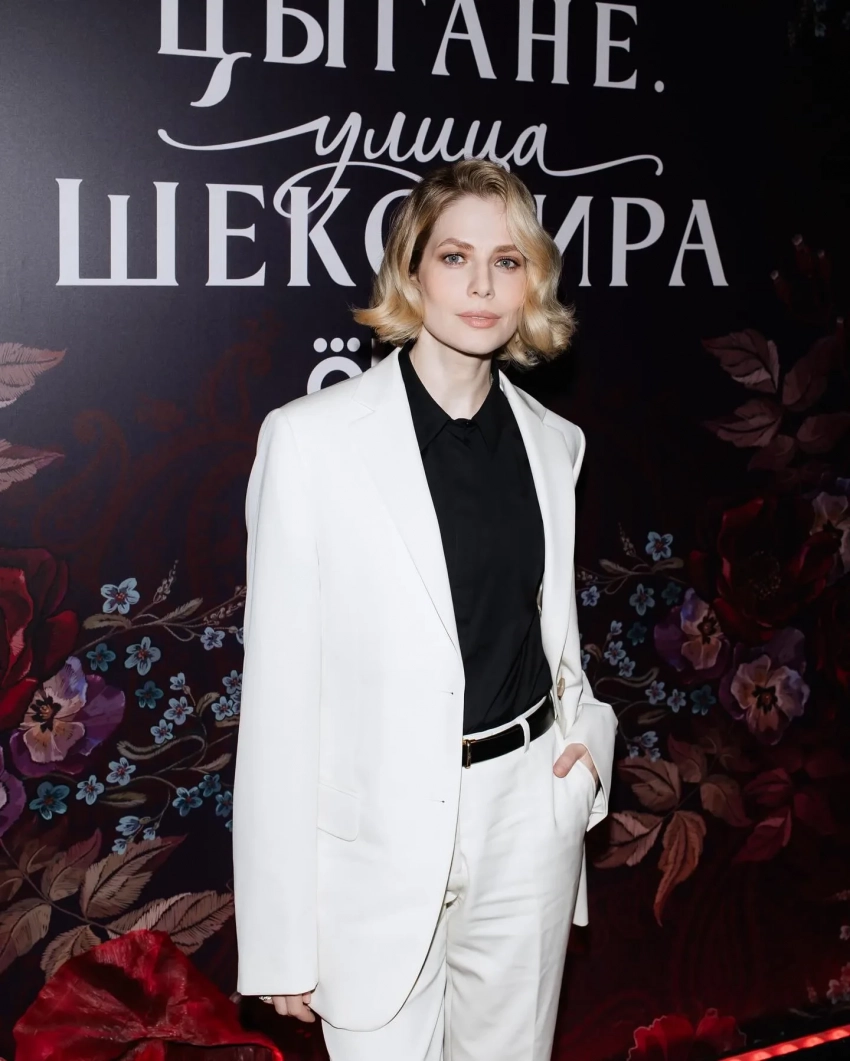 Для выхода в свет 41-летняя актриса выбрала белоснежный костюм с прямыми брюками и приталенным жакетом, который она надела поверх чёрной рубашки. Дополнили образ ремень с золотой пряжкой и лакированные туфли-лодочки в тон, а акцентом образа стал новый цвет волос, которые Снигирь уложила в мягкие волны.