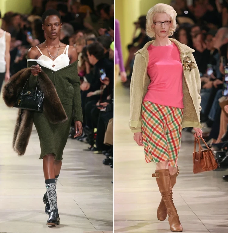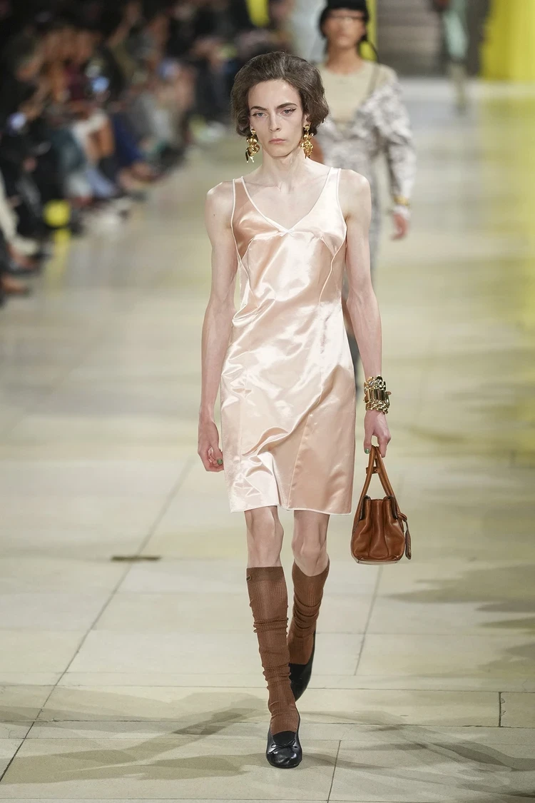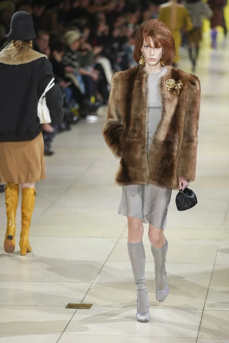 Миучча Прада в рамках своего бренда Miu Miu продемонстрировала расслабленные образы, в которых уже по традиции сочетала несочетаемое: полушубки и укладки из нулевых, шелковые комбинации, цветные гольфы, крупные украшения… Такое себе может позволить только уверенная женщина, именно такой и является героиня Miu Miu.