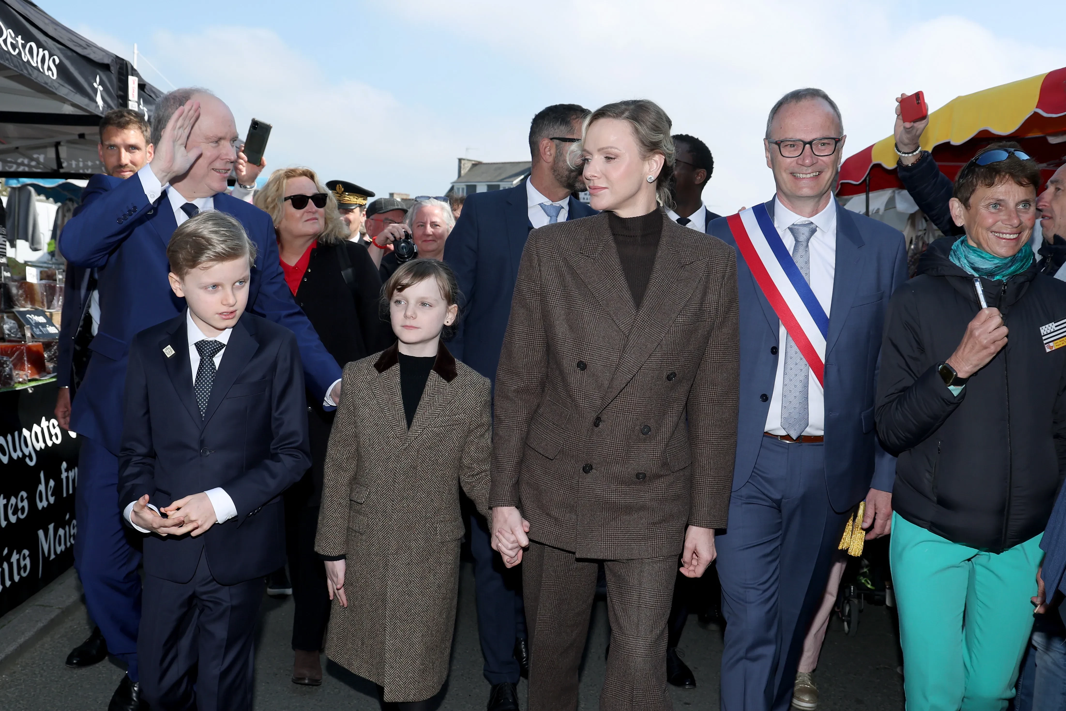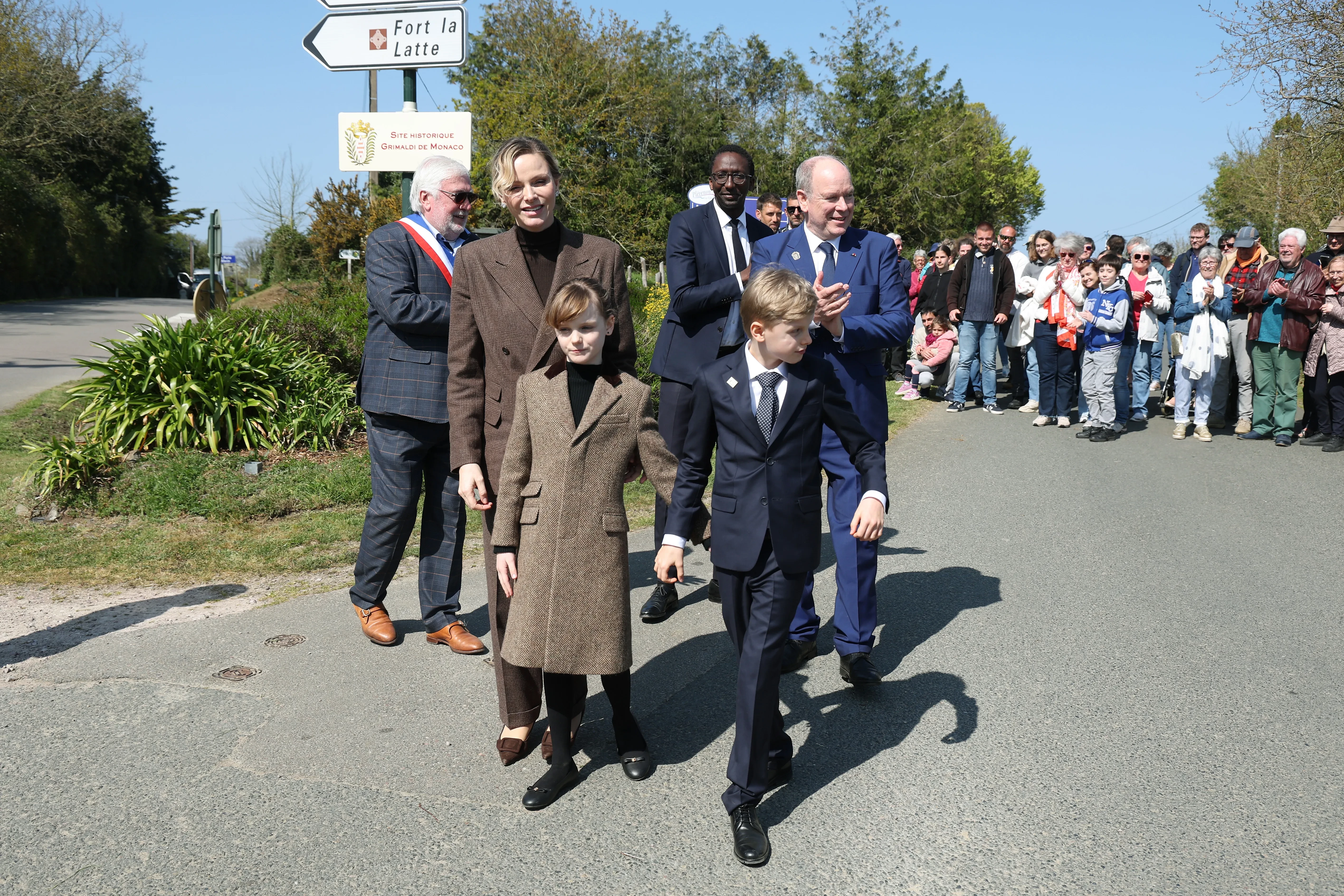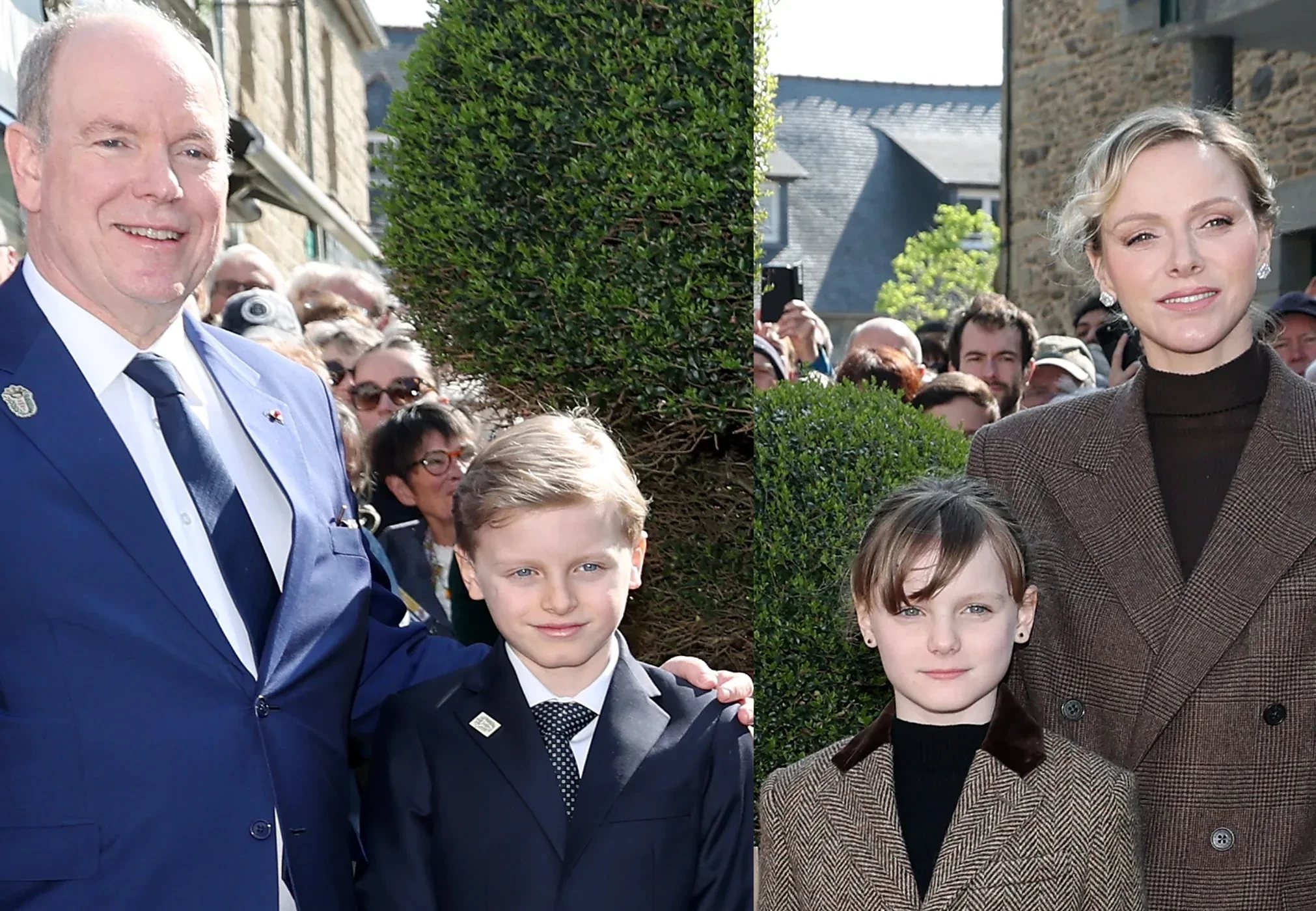Князь Монако Альбер II и княгиня Шарлен с детьми посетили французский департамент Кот-д'Армор, который исторически связан с княжеством. Перед жителями города Матиньон, которые собрались на улицах, чтобы приветствовать королевскую семью, они появились в парных образах.