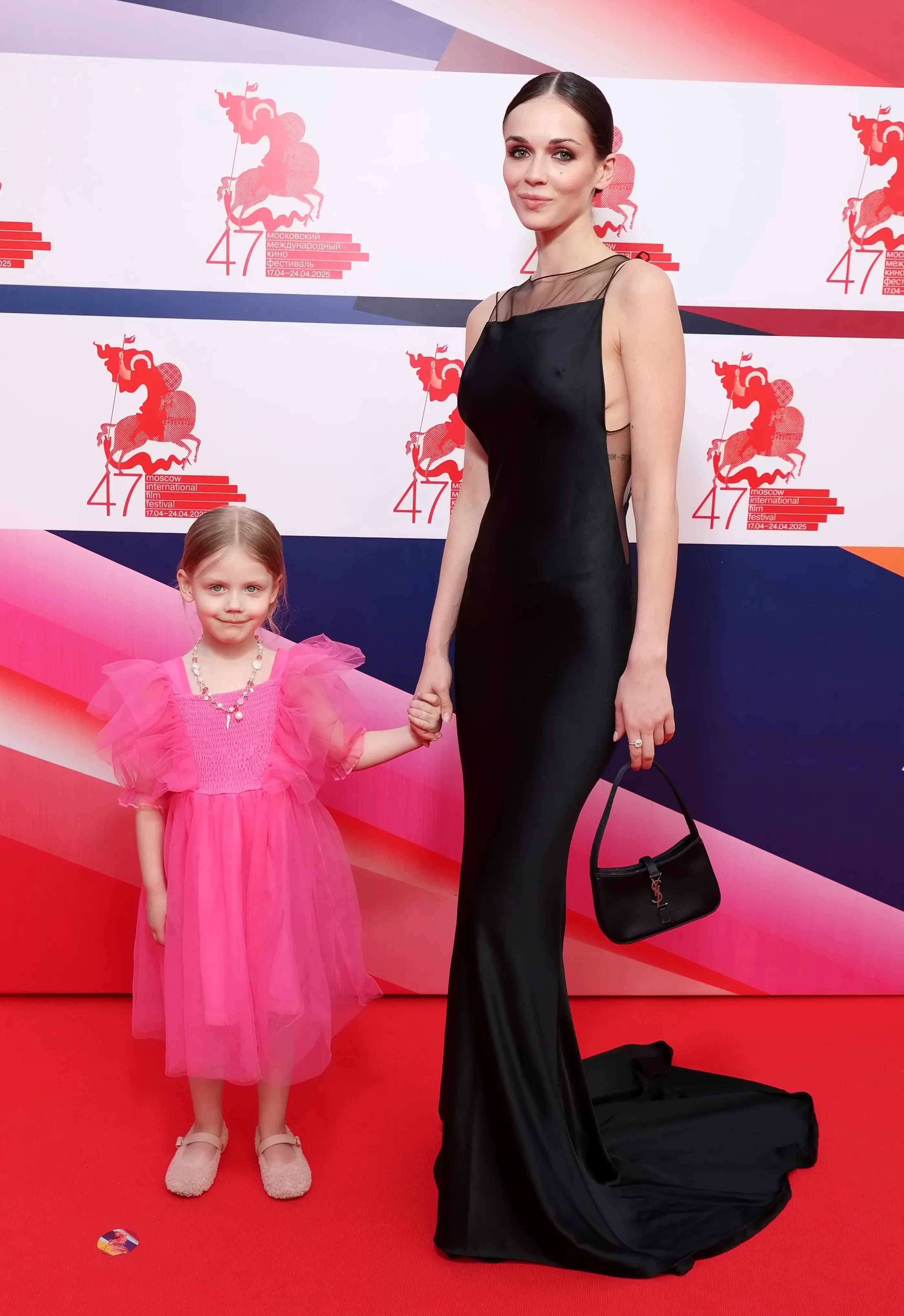 Актриса позировала фотографам в облегающем чёрном платье и с сумкой Saint Laurent, а Мия была одета в ярко-розовое платье и плюшевые балетки. Отца девочки на церемонии открытия не было.
