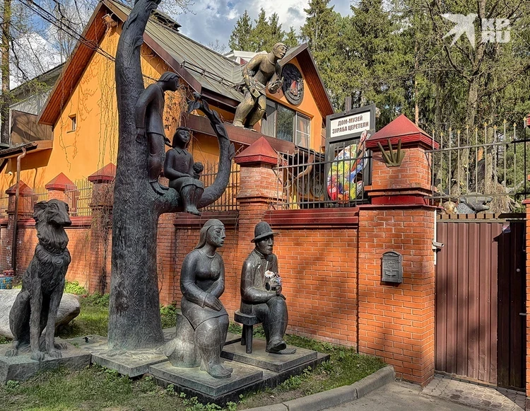 Этот дом видно издалека - даже не зная точного адреса, мимо ни за что не пройдешь. У ворот милуются несколько бронзовых парочек. Одна из них даже на ветви литого дерева забралась. И за всем этим наблюдают огромные благородные борзые. Как живые! На постаментах под собаками выбиты авторские клейма: «Зураб Церетели».