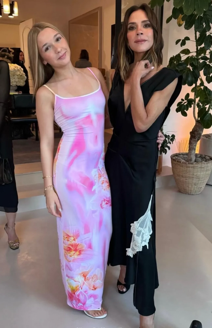 13-летняя Харпер Бекхэм в платье-комбинации появилась с мамой Викторией Бекхэм на вечере в Дубае