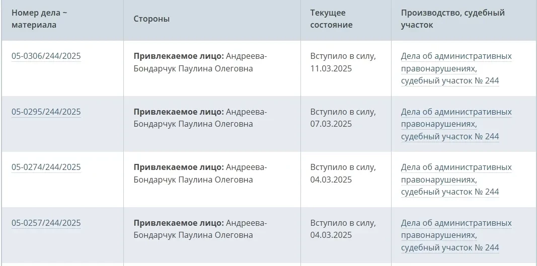 Скриншот с сайта с новой фамилией Паулины АндреевойНапомним, что слухи о расставании Паулины Андреевой и Фёдора Бондарчука начали распространяться ещё прошлой осенью. Тогда режиссёр стал выходить в свет без обручального кольца. По одной из версий, причиной их разрыва стала измена Бондарчука с актрисой Софьей Синицыной. Примечательно, что сама Синицына слухи о романе с режиссёром отрицала. Согласно другой версии, супруги не сошлись во взглядах на жизнь. По данным СМИ, Паулина уже переехала из квартиры Фёдора вместе с их четырёхлетним сыном Иваном. После развода ей досталась квартира в Санкт-Петербурге, где она сейчас и живёт.