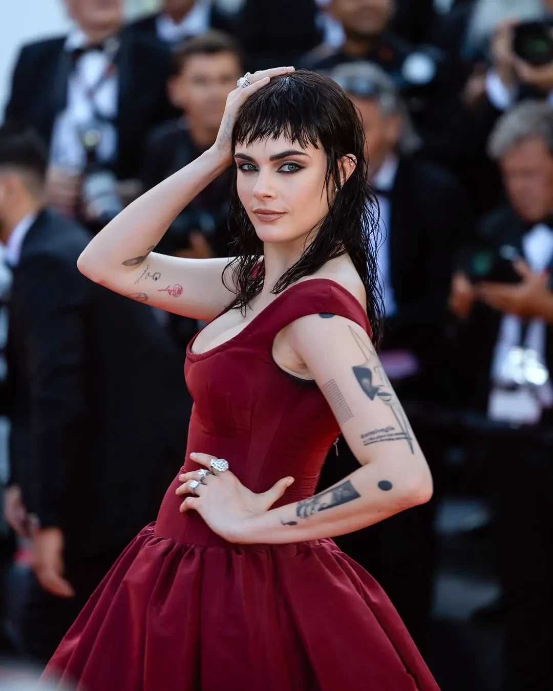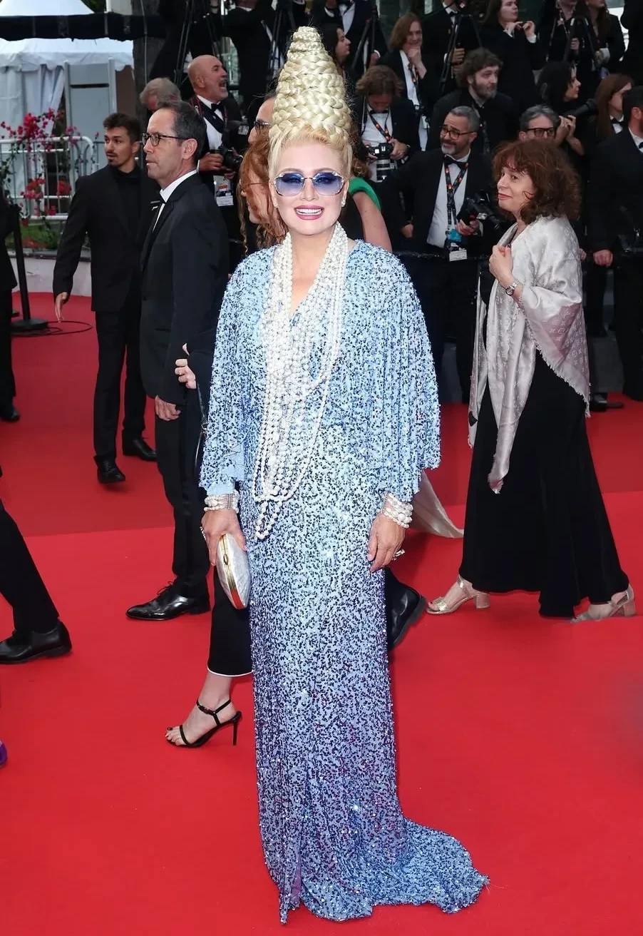 Ещё один странный выход у Коко Роша в Ionut Razvan. В целом платье выглядит интересно и напоминает творения Джереми Скотта в Moschino, в которых Коко всегда выглядела органично. Но в этот раз образ слишком перегружен массивной причёской. Кстати, о причёсках. Вот мы и подошли к главному гуру по треш-укладкам Лене Лениной, которую даже пытались запретить в Каннах из-за её причёсок. У писательницы всё стабильно: ещё пару неудачных каннских выходов в копилку.