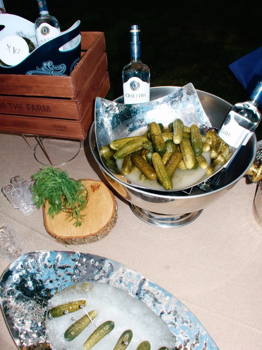 Дмитрий и Кристина ВикулиныКристина и Дмитрий Викулины, Пётр Дранга и Агата МуцениецеДмитрий Викулин, Ксения Ермоленко и Павел ТабаковМаша Фёдорова и Мария АндрееваАндрей Артёмов и Дмитрий ВикулинЕкатерина Мцитуридзе и Дмитрий ВикулинДмитрий Викулин и Светлана КузнецоваДмитрий Викулин и Игорь ГаранинДмитрий Викулин, Юлия Харитонова и Асланбек ДжалиевВладимир и Анита Аверьяновы, Дмитрий ВикулинКатя ДобряковаЕлена ОкутинаТоржество проходило под открытым небом у воды, праздничный стол ломился от угощений и напитков на любой вкус, а в какой-то момент сам именинник эффектно занырнул в бассейн. Вместо классического торта подали трендовый — украшенный ягодами, свечи на котором Дмитрий задувал вместе с женой Кристиной.