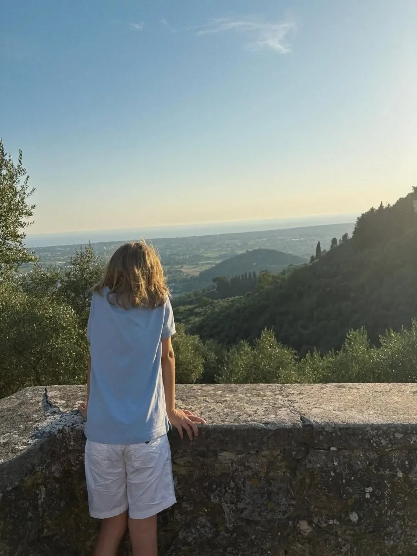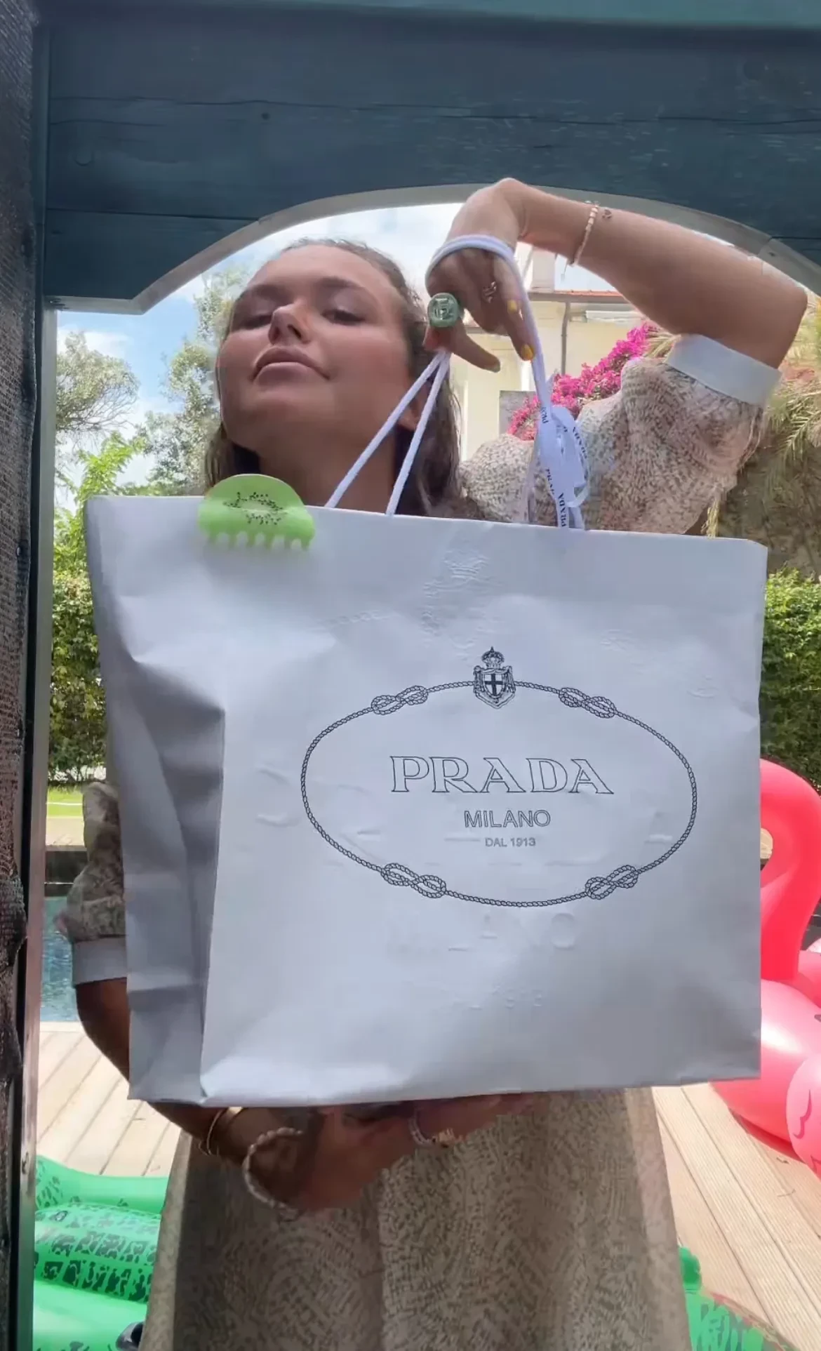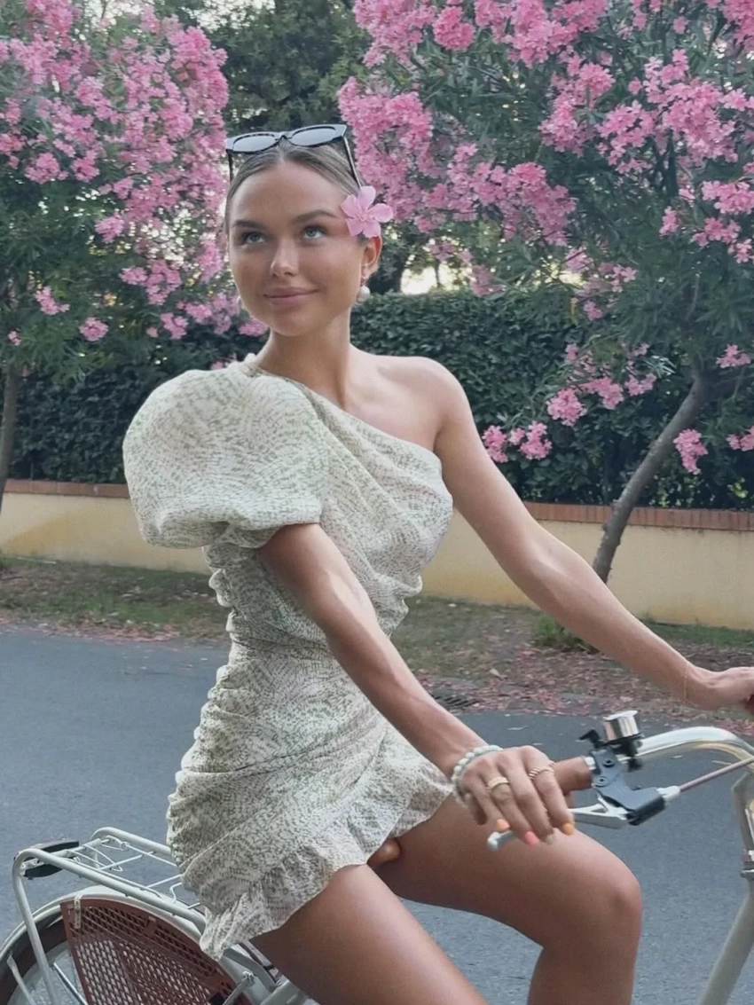 На отдыхе инфлюенсер и основательница бренда одежды Dress by Stesha выгуливает модные образы, катается на велосипеде по итальянскому курорту в платьях и на каблуках, ест пасту в компании родителей и семилетнего брата Марка, делает покупки в бутике Prada и просто наслаждается отпуском.