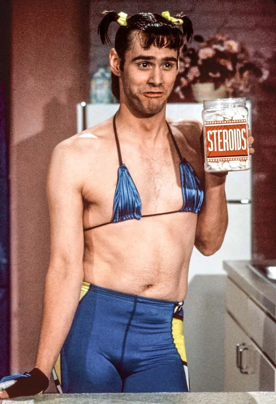Джим КерриК слову, Керри появлялся в этом образе в начале 90-х в рамках комедийного шоу In Living Color. В одном из скетчей он пародировал популярные в то время фитнес-уроки
