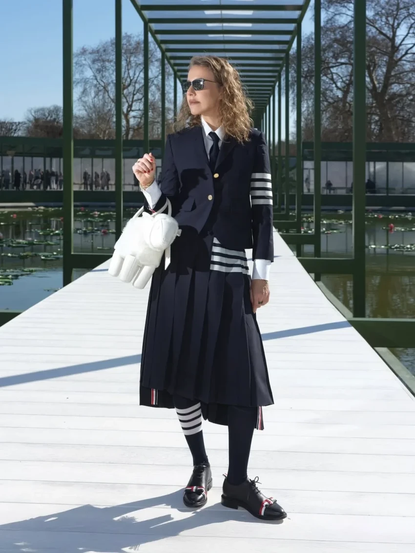 Блогерши Диана Коркунова и Алла Брулетова сходили на вечеринку, а светская львица Дарья Лисиченко в костюме из кожи посетила показ Loewe и ужин Schiaparelli. Тем временем Ксения Чилингарова пришла на шоу Chanel в твидовом костюме с мини-юбкой.