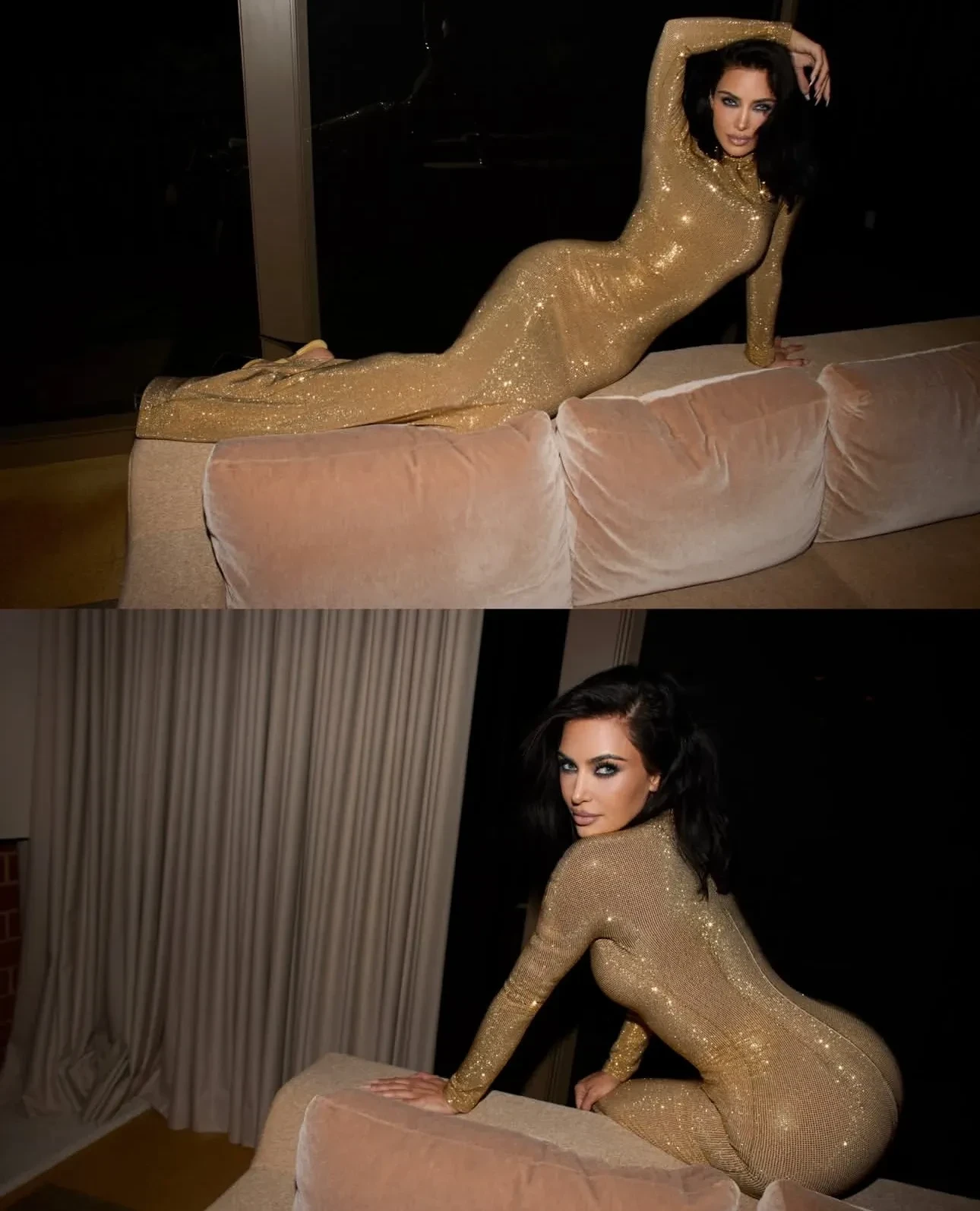 45-летняя бизнесвумен Ким Кардашьян показала новые фото с оскаровской вечеринки Vanity Fair, где она появилась в образе Gucci. На мероприятии Ким блистала в платье в пол с высокой горловиной и длинными рукавами золотого цвета из последней коллекции Демны Гвасалии. Увидев фото в соцсетях Кардашьян, её бойфренд Льюис Хэмилтон оставил восхищённый комментарий.