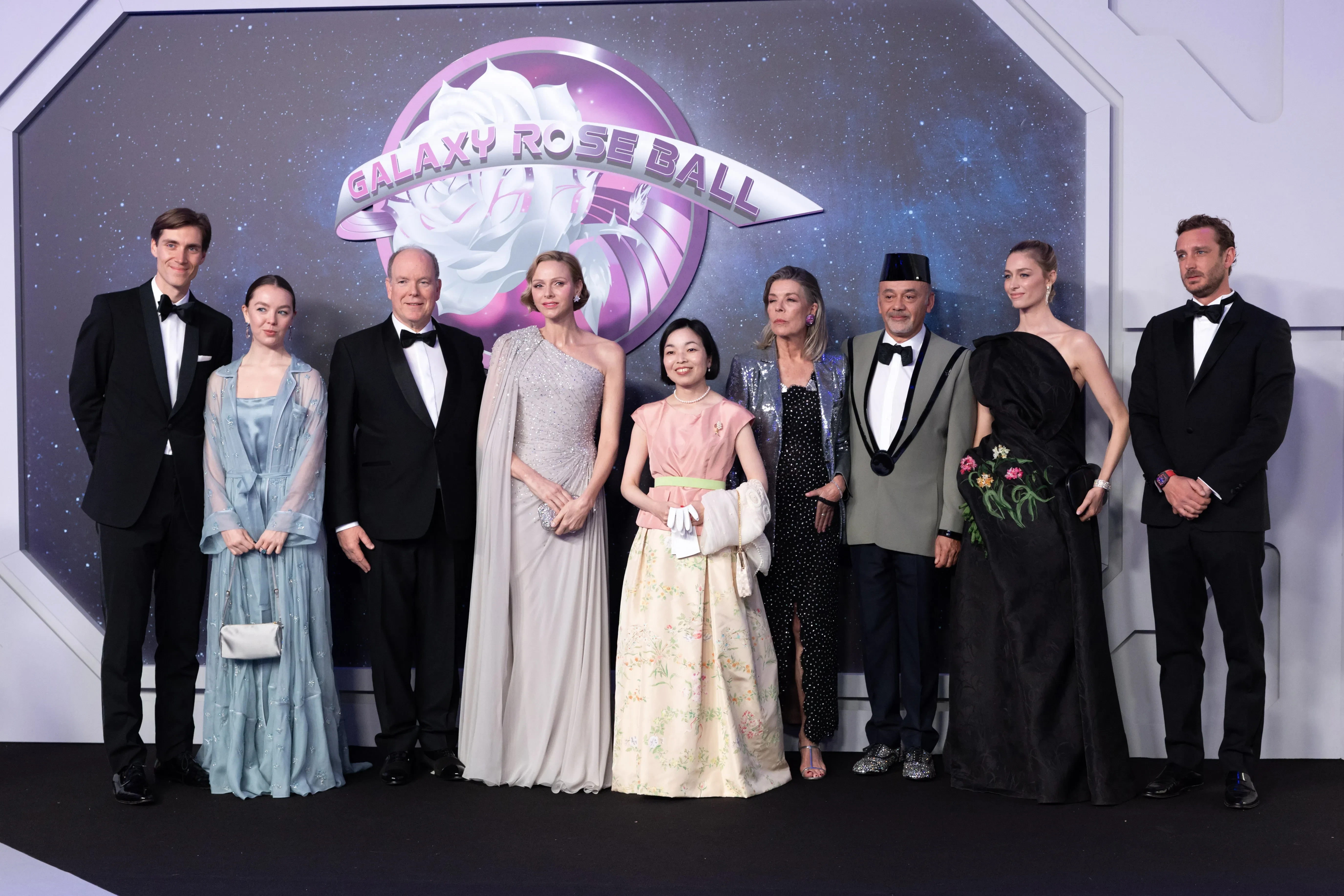 Княгиня Шарлен и князь Альбер II, принцесса Акико МикасаБлиже к вечеру состоялся традиционный Бал роз. На благотворительный вечер в поддержку фонда имени Грейс Келли (художественным руководством которого вновь занимался Кристиан Лубутен) княгиня надела лилово-серебристое платье Elie Saab, расшитое бисером и кристаллами, а князь — чёрный смокинг с бабочкой. Здесь, как и полагается, собрались и другие представители дома Гримальди. В их числе: принцесса Александра Ганноверская, принцесса Каролина и Пьер Казираги с супругой Беатриче Борромео.
