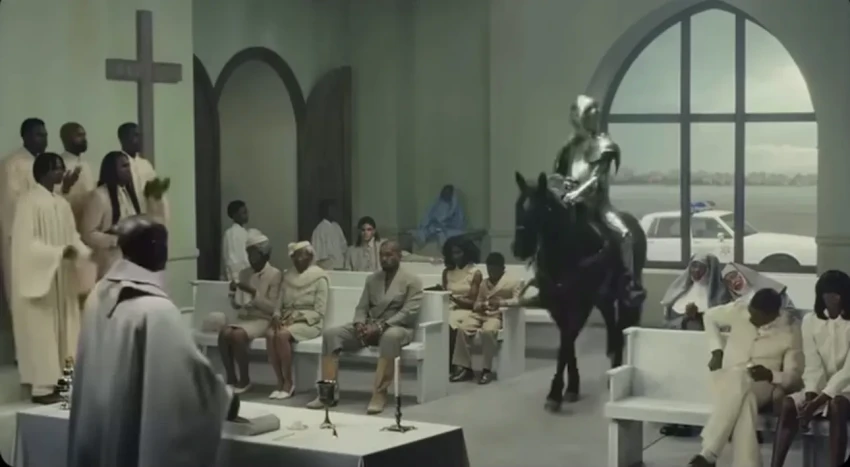 https://t.me/spletnik2006/51349Данный видеоклип — дебютная режиссёрская работа жены Уэста, 31-летней Бьянки Цензори. Главная фишка видео — съёмка одним дублем без склеек и монтажа. Сюжет клипа разворачивается в бежевой церкви, пространство которой Бьянка превратила в своеобразный "психологический ландшафт", где появляются и исчезают различные персонажи.