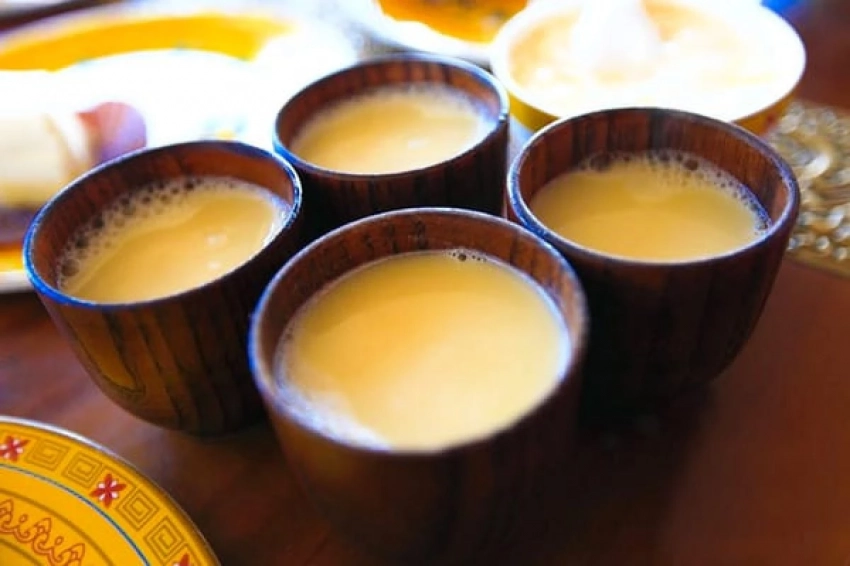 Чай с маслом – традиционный напиток тибетских монахов. Они готовят его на основе молока яка (местной разновидности коровы), добавляя топленое масло яка и соль. Такой напиток считается одним из самых питательных и полезных. Он не только насыщает, но и тонизирует, помогает бороться с усталостью и придает силы.