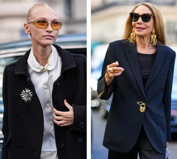 Броши возвращаются в моду, но уже в новом прочтении. Они больше не ассоциируются с аксессуарами из бабушкиного сундука, а становятся яркими и самобытными деталями образа. Их носят на лацканах жакетов, пальто, головных уборах, шарфах и даже на шлевках брюк. Важно, чтобы броши были массивными или сочетались в стильные композиции.