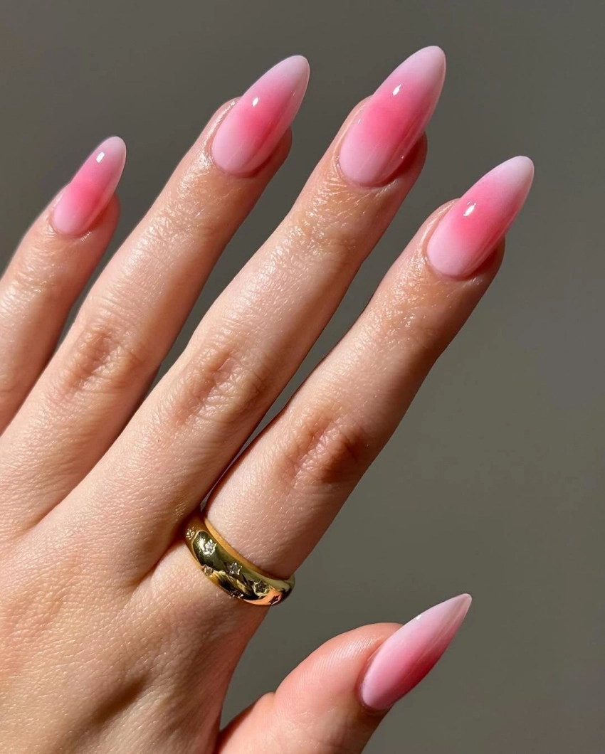 «Румяный» маникюр — это мягкий градиент, который имитирует естественный румянец на щеках. Он отличается плавными переходами и размытым эффектом, что создаст визуально нежный и естественный маникюр. Этот стиль поможет вам привлечь удачу и благополучие, напоминая о важности внутренней гармонии.