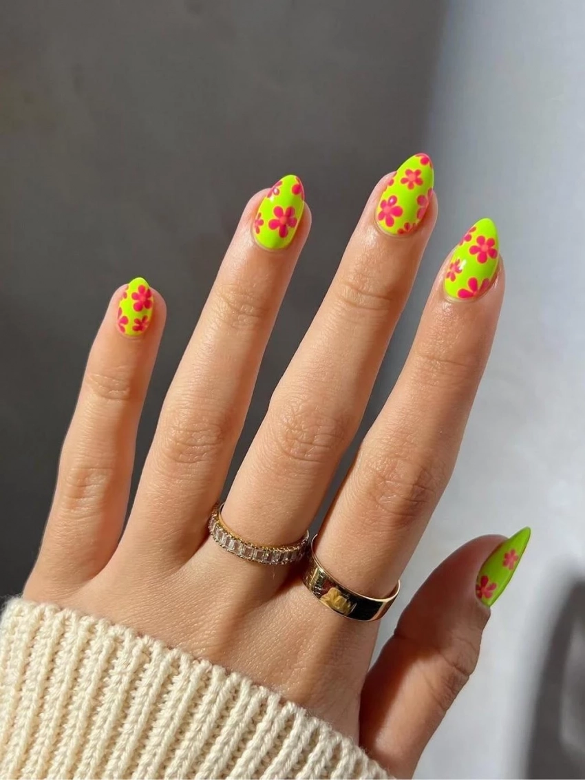 Весна — пора экспериментов! Неоновые цветы на ногтях идеально подойдут для тех, кто хочет заявить о себе и настроиться на волну финансового успеха через творчество и яркость.