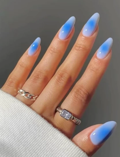 Голубая аура на ногтях моментально погружает в атмосферу легкости и чистоты. Нежные переливы напоминают о летнем небе или морской глади и буквально дарят ощущение прохлады — особенно в жаркие дни.