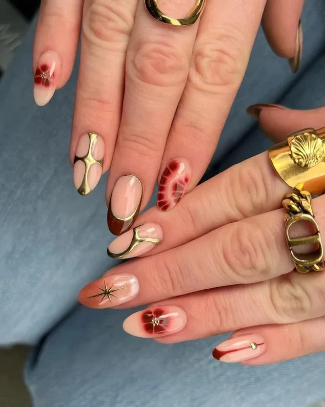 Летние идеи нейл-дизайнов с золотыми деталями